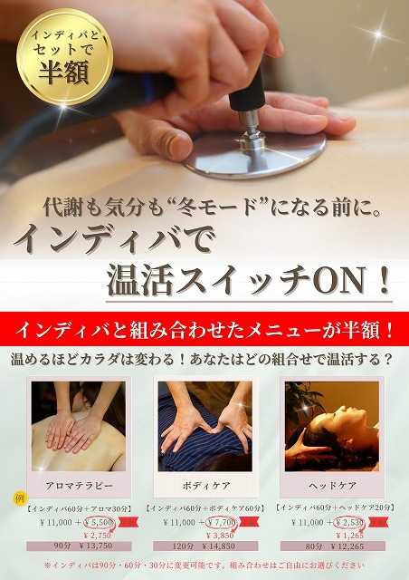 HOME > 新着情報 > キャンペーン > 11月スタート!【インディバ温活キャンペーン】